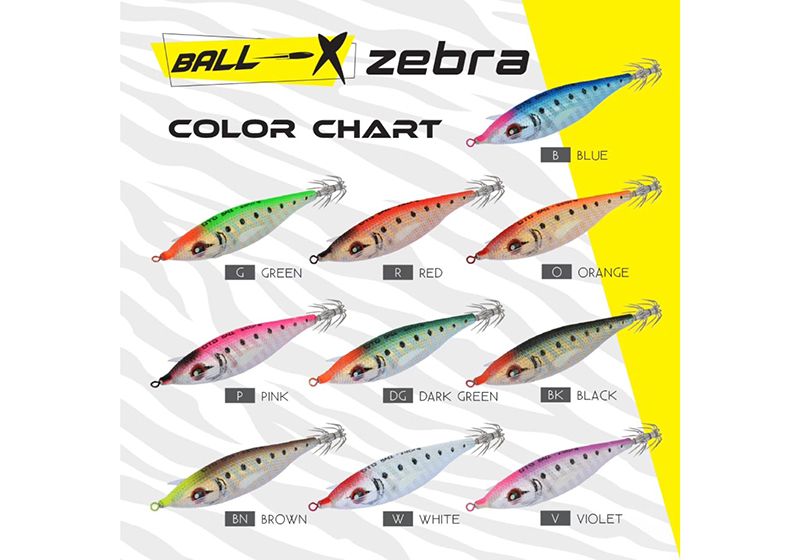 Η Ball Zebra είναι μια προσαρμογή του σχεδίου Zebra, ενός μοντέλου για ψάρεμα καλαμαριών από βάρκα, αλλά στο σώμα του μοντέλου Ballistic Bukva. Οι καλαμαριέρες Zebra διαθέτουν ένα διαφανές, φωτεινό σώμα με έντονο φώσφορο.