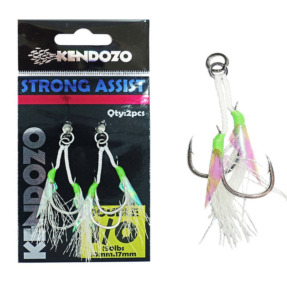 Δεμένα με κορδόνι 150lb και 200lb αποτελούν μονόδρομο όταν το ζητούμενο είναι η μέγιστη αντοχή και δύναμη. Στα συγκεκριμένα assist τα αγκίστρια που έχουν χρησιμοποιηθεί είναι σχεδιασμένα με κοντύτερο και πιο παχύ κορμό, διαθέτοντας απίστευτη αντοχή σε κάθε περίσταση. Εντυπωσιακό τους στοιχείο οι πλούσιες ιριδίζουσες τρέσες που διαθέτουν αλλά και το τεχνητό δέρμα ψαριού μέσα στην τρέσα, δημιουργώντας έντονες αντανακλάσεις στο νερό, προσδίδοντας ένα ακόμη κίνητρο επίθεσης από τα ψάρια. Επιπλέον, το δέσιμό τους με ασύμμετρο τρόπο, εξασφαλίζει ένα σίγουρο και ασφαλές κάρφωμα. Κατάλληλα για τεχνικές τόσο από σκάφος όσο και από στεριά επιλέγοντας το κατάλληλο μέγεθος.