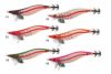 Egi with a red glow finish and UV coating, characterized by a very slow sinking rate, which increases its attractiveness when fishing.