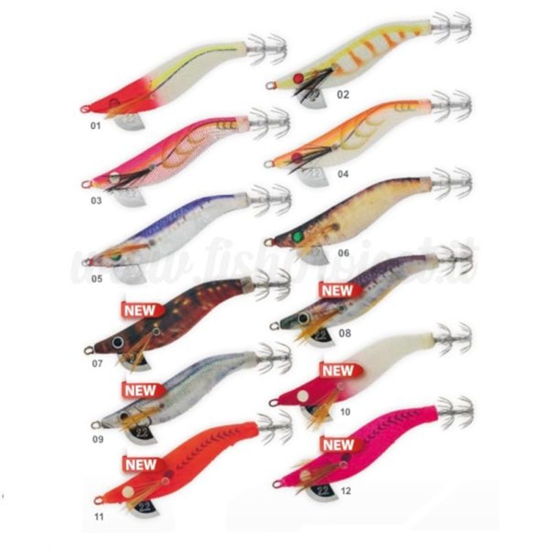 Series of small Egi finished with high quality fabric and with neat and attractive colors. The excellent balance and slow sinking allow you to fish with great results both from the boat and from the shore. The highly sharp and penetrating crowns minimize the risk of losing the cephalopod in combat.